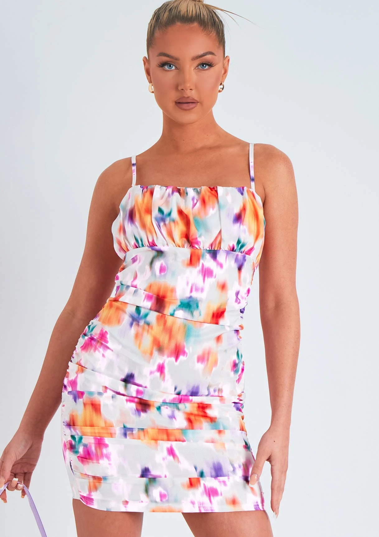 Obsessing over everything colourful this season, our Carrie Abstract Print Mini Dress is a bodycon fit in a mini length with a bold multi-colour abstract print. You’re about to turn heads babe!