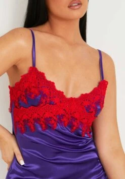 Shelby Silver Satin Lace Trim Mini Slip Dress