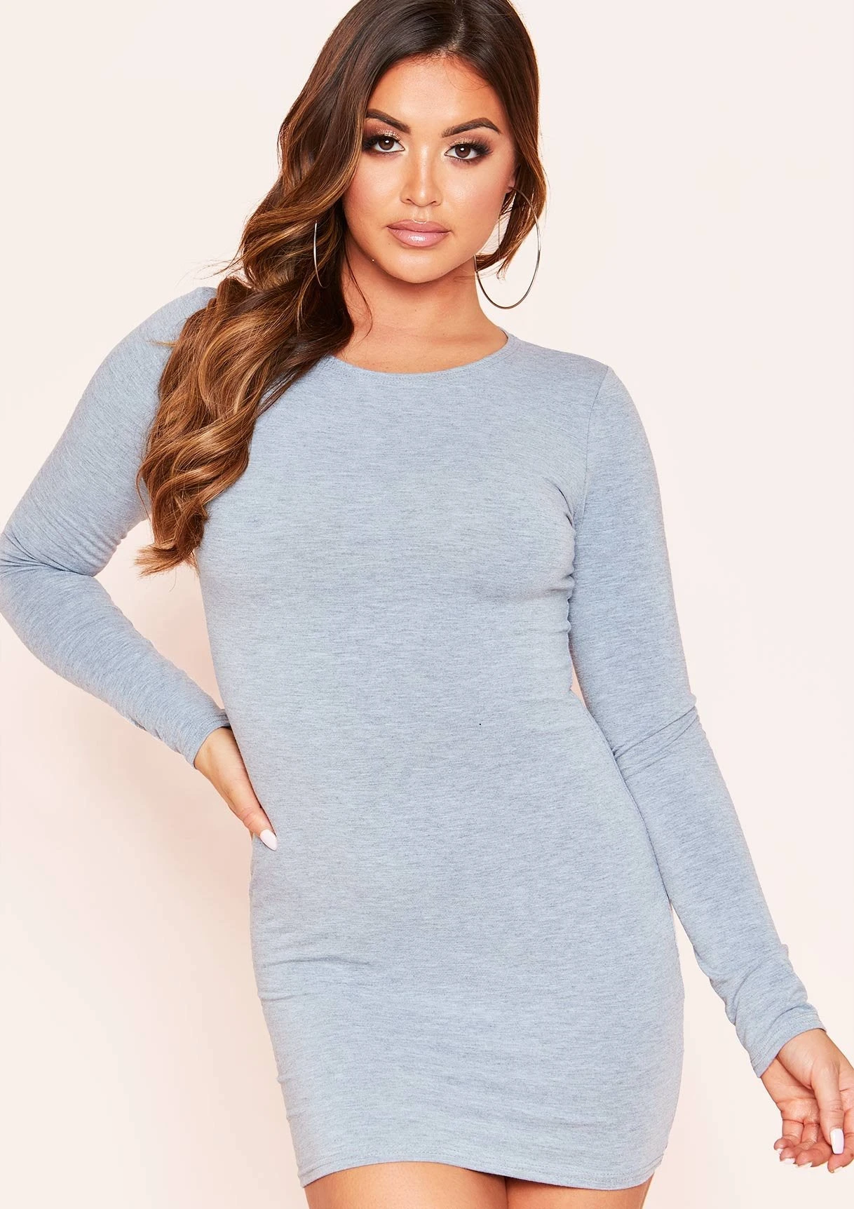 Lexi Grey Long Sleeve Basic Jersey Mini Dress