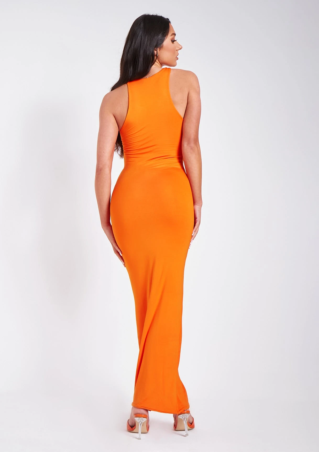 Naomi Orange Racer Back Thong Side Maxi Dress