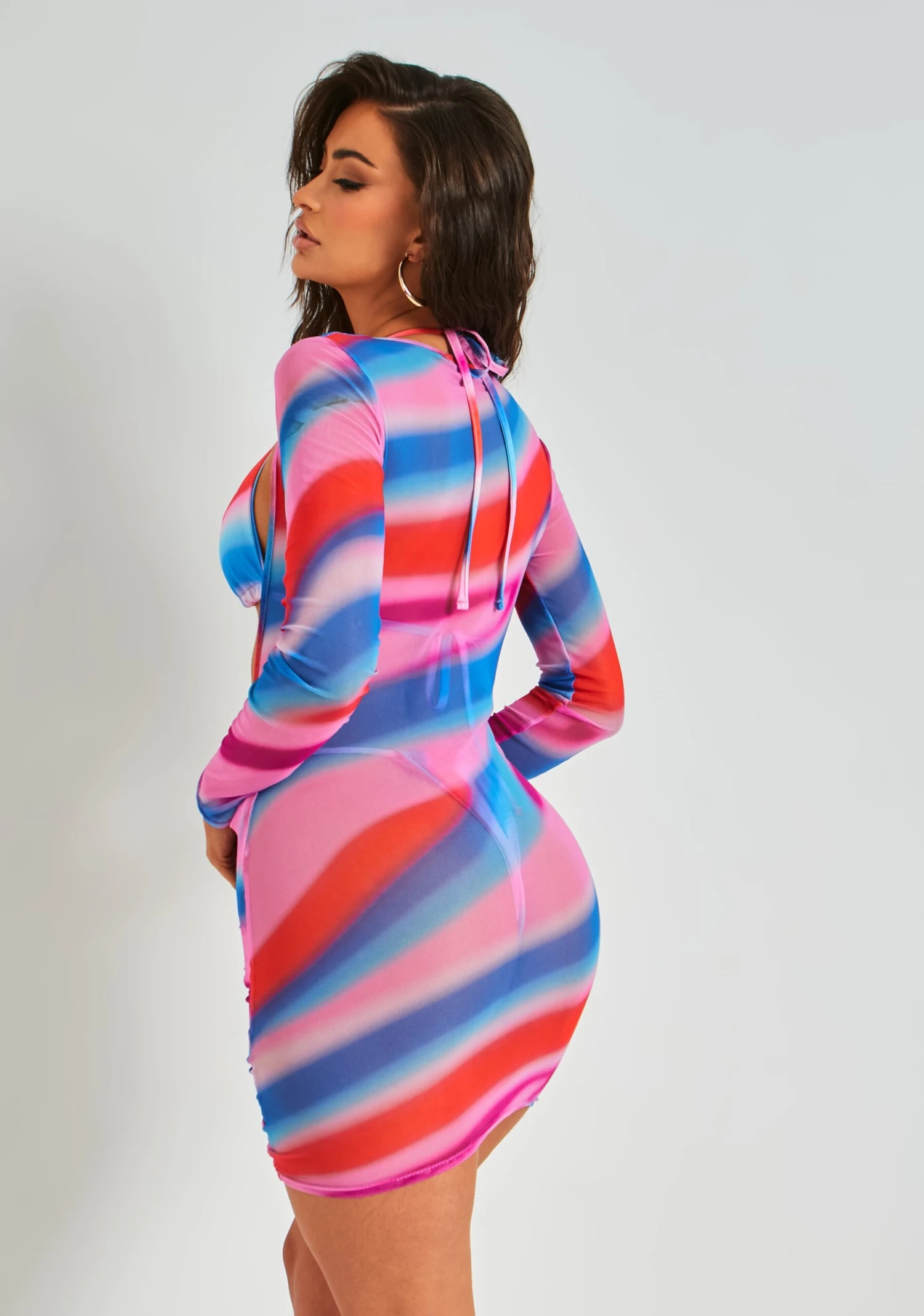 Multi Printed Long Sleeve Mesh Dress Cover Up